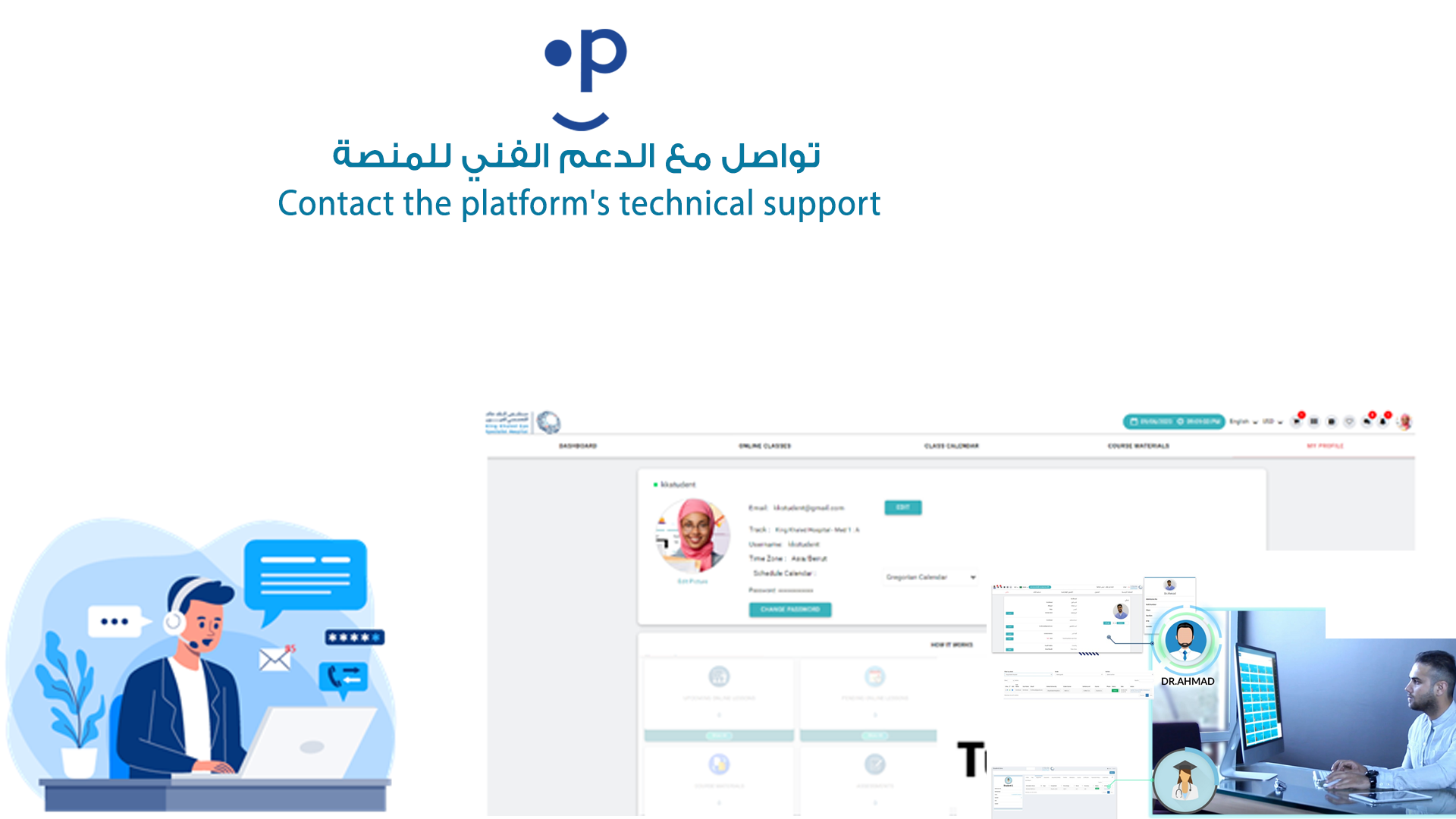 بدء محادثة الدعم الفني: داخل نافذة الدردشة، يمكنك كتابة استفسارك أو طلب المساعدة. قد يكون هذا متعلقًا بالمواد الدراسية أو مشكلات تقنية أو أي استفسار إداري. اضغط على "إدخال" لإرسال سؤالك.